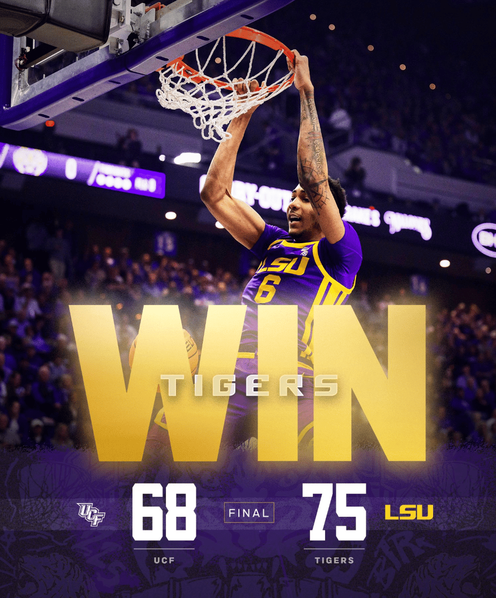 🔼 Tune Up. LSU basketball took on UCF in an exhibition game on Sunday afternoon. The Tigers posted the 75-68 win, and are ready to open the regular season vs. Tarleton State at home on Wednesday, Nov. 5, at 7 p.m. Tickets available here!