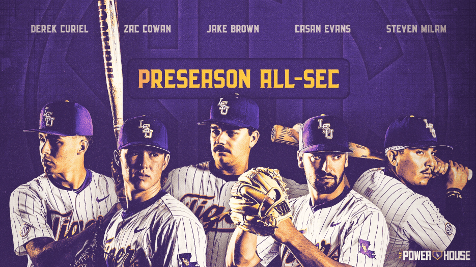 🔼 On The Diamond. LSU baseball is the favorite to win the 2026 SEC regular-season title. The Tigers lead all teams with three First-Team All-SEC selections: sophomore outfielder Derek Curiel (2025 National Freshman of the Year), sophomore RHP Casan Evans, and senior RHP Zac Cowan. Junior shortstop Steven Milam and junior outfielder Jake Brown earned Second-Team honors, giving LSU five total preseason all-conference selections—tied with Texas for the most in the league.