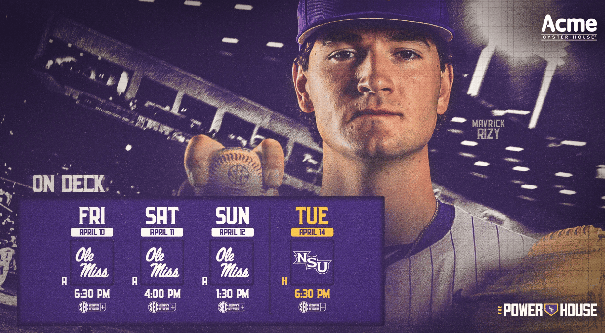 🔼 On Deck. No. 24 LSU baseball hosts Northwestern State today for a 6:30 p.m. CT first pitch on SEC Network+, riding momentum from a week that showcased the Tigers' explosive lineup. Jake Brown leads the team with 15 home runs and 46 RBI, ranking No. 3 in the SEC in both categories, while Derek Curiel is hitting .359 with 39 RBI to rank among the league's best across multiple categories.