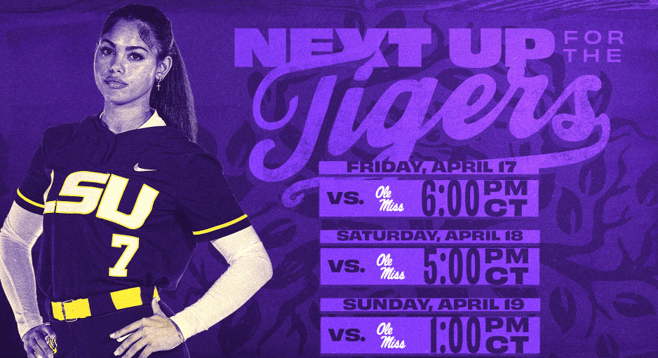 🔼 On Deck. No. 22/17 LSU softball hosts Ole Miss at Tiger Park this weekend for a three-game series with first pitch tonight at 6 p.m., Saturday at 5 p.m., and Sunday at 1 p.m. CT, all streaming on SEC Network+. The Tigers (29-14, 6-9 SEC) bring plenty of momentum after an 8-0 run-rule win over UL Lafayette, with ace Jayden Heavener picking up her second career no-hitter in the process. Heavener leads the staff with 11 wins and 94 strikeouts, while Sierra Daniel (.341), Jalia Lassiter (.323), and Kylee Edwards (.315) anchor a lineup that ranks seventh nationally with 210 walks.