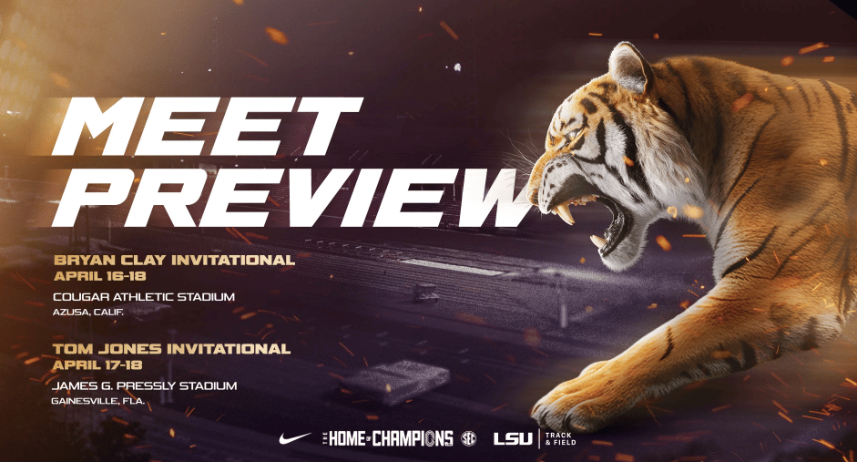 🔼 Split Coast. LSU track and field splits into two groups this week, with the distance team heading to California for the Bryan Clay Invitational (April 16–18) while 46 athletes make the trip to Gainesville for the Tom Jones Memorial Invitational (April 17–18). At Tom Jones, all eyes are on Shawnti Jackson's 200-meter debut, freshman Malachi Austin looks to push toward the sub-45 barrier in the 400 meters, Tima Godbless hunts a breakthrough in the 100 meters, and nation's No. 4 discus thrower Princesse Hyman returns to competition for the first time since March.