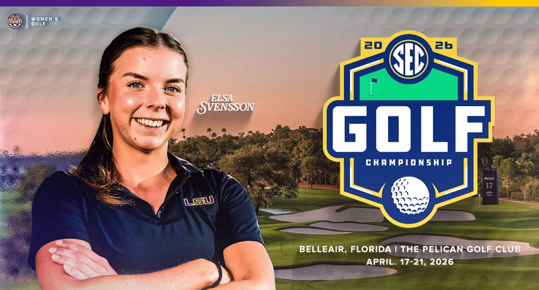 🔼 Chasing a Championship. LSU women's golf tees off today at the SEC Championship in Belleair, Florida, looking to reach match play for the sixth consecutive year. The Tigers are ranked 32nd nationally in a loaded field: 14 of the 16 SEC programs sit in the top 35. LSU's lineup features seniors Elsa Svensson and Taylor Riley, sophomores Francesca Fiorellini and Rocio Tejedo, and freshman Ryleigh Knaub, three of whom rank in the top 70 nationally. First tee times begin at 8:10 a.m. CT
